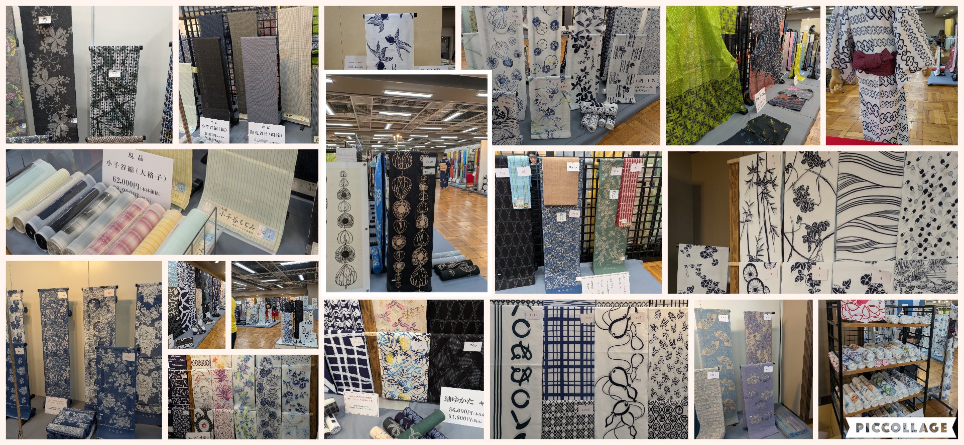 以前は様々な種類の浴衣がどんな職人さんによってどの程度の手間暇をかけて染め上がるかを、工場まで行って見に行くことができました(現在はほとんどの工場は非公開になっております)一つの反物、一つの織物、この展示してある数多くの反物たちには、熟練した職人さんたちが関わっていることを是非知ってもらいたいです。この手仕事の”料金設定”に関しての妥当性を理解することができるのです。