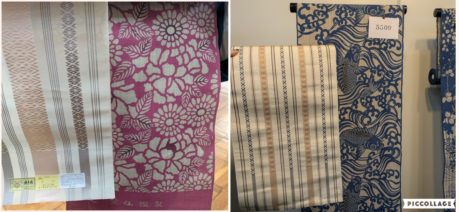 西村さんのところから今日は3本の八寸の献上帯を購入させていただきました。どの帯も選んだ浴衣に合わせてコーディネートして買ったので、仕上がりがとっても楽しみです。