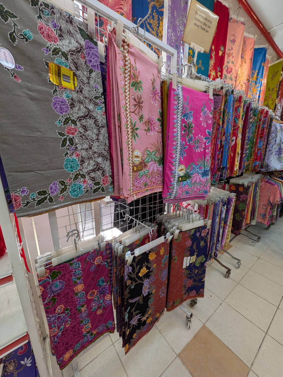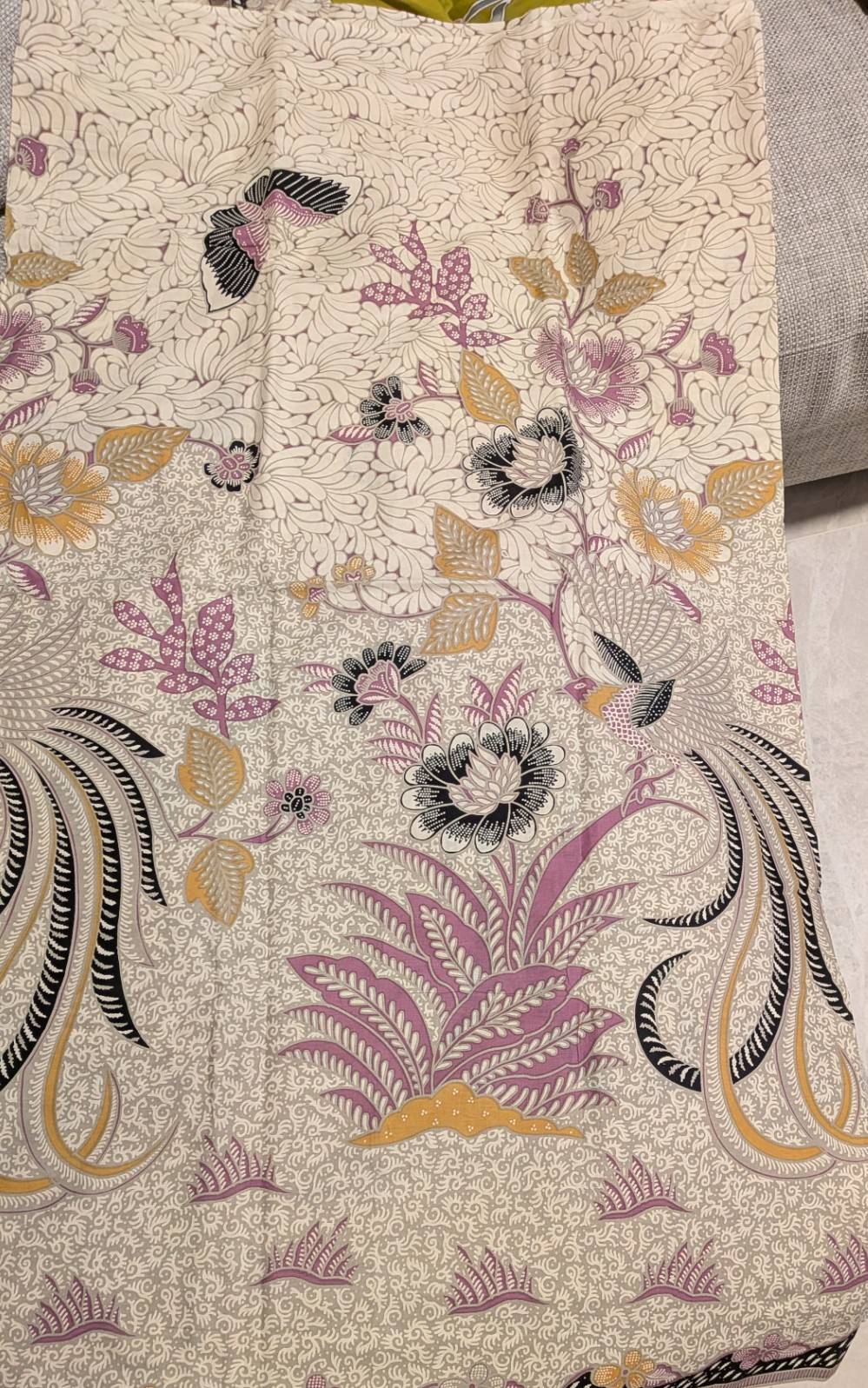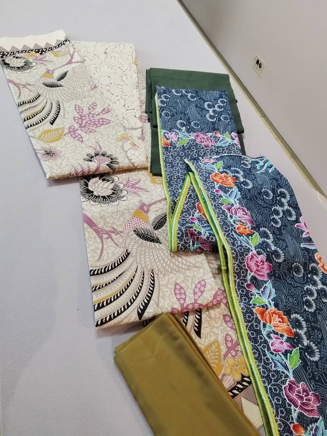 昨年度の年末の締めに、生徒さんがシンガポールとインドネシアから直接バティックの生地を買ってきてくださりました。これを見るだけでテンションがあがります(笑)